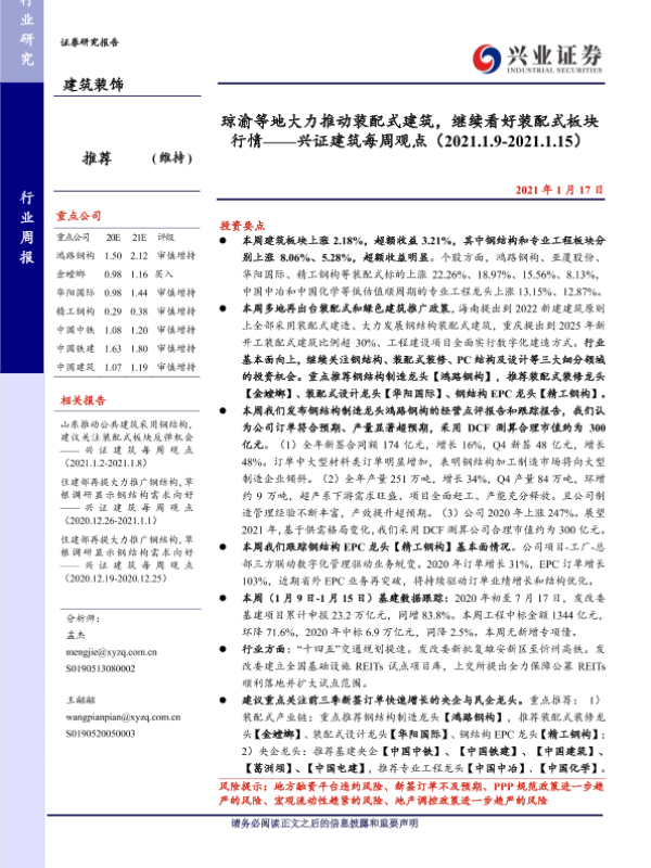 【兴业证券】【20210117】琼渝等地大力推动装配式建筑,继续看好装配式板块行情-41页