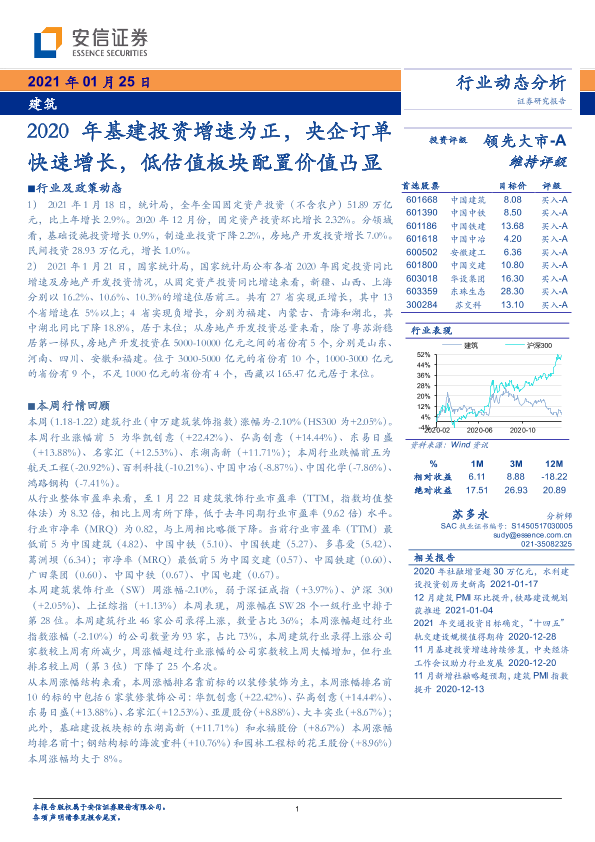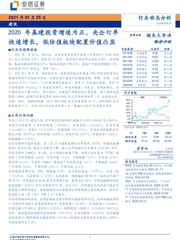【安信证券】【20210125】2020年基建投资增速为正,央企订单快速增长,低估值板块配置价值凸显-11页