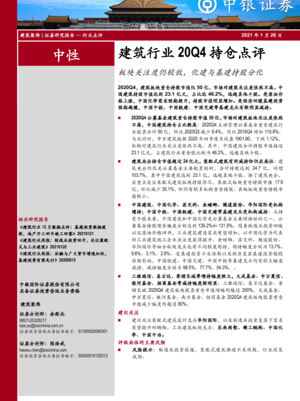 【中银证券】【20210126】建筑行业20Q4持仓点评:板块关注度仍较低,化建与基建持股分化-7页