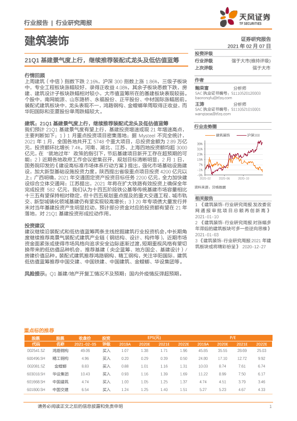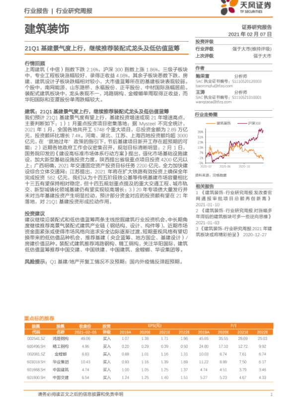 【天风证券】【20210207】21Q1基建景气度上行,继续推荐装配式龙头及低估值蓝筹-6页