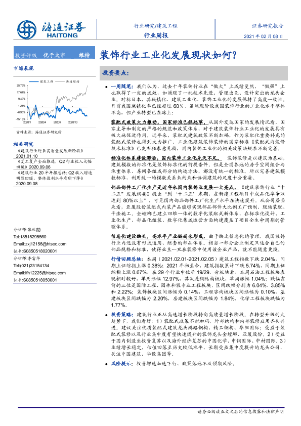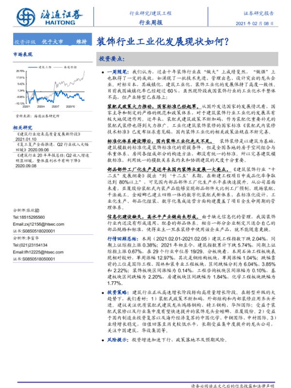 【海通证券】【20210208】建筑工程行业周报:装饰行业工业化发展现状如何-6页