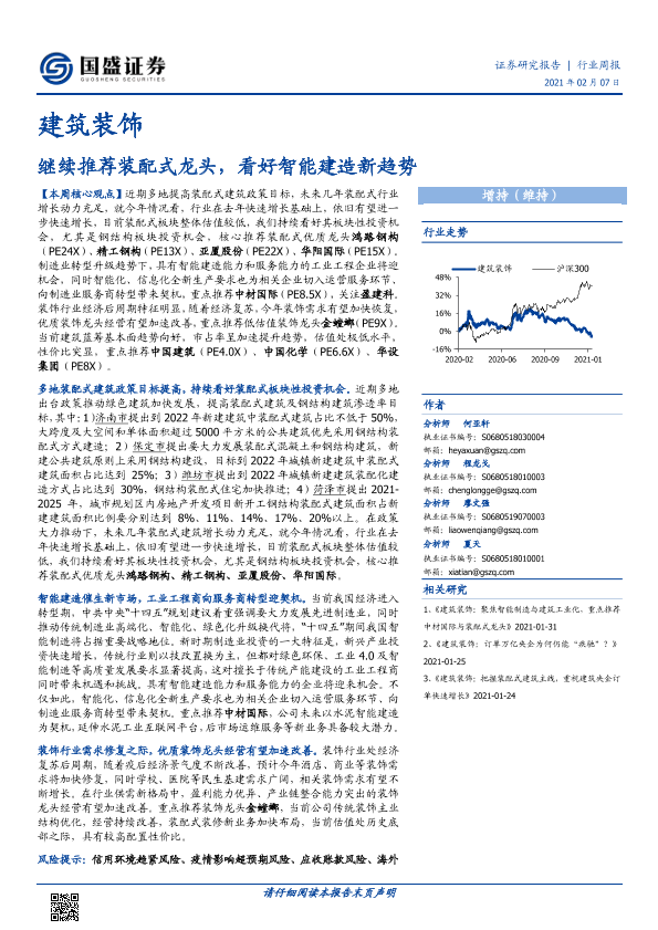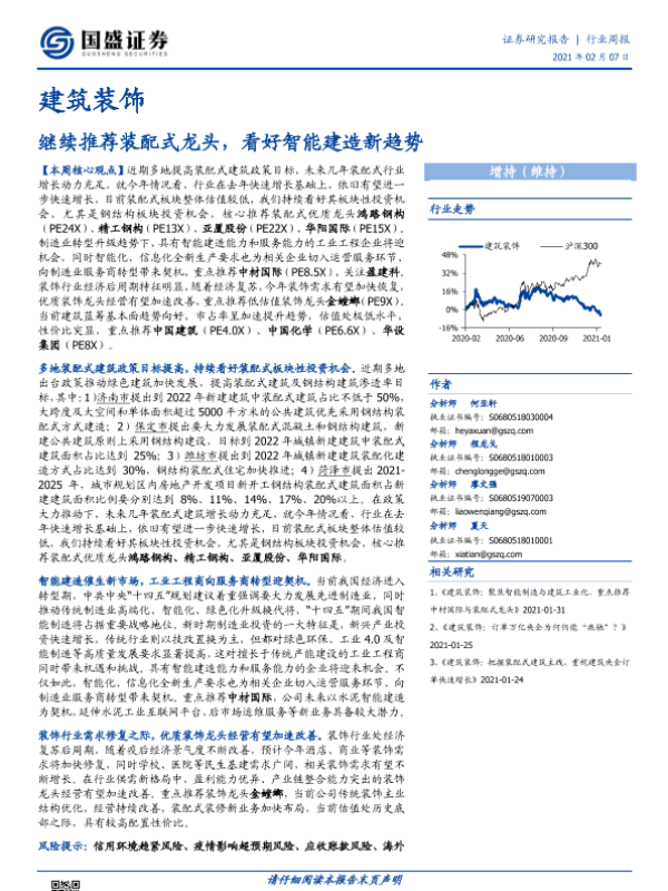 【国盛证券】【20210207】建筑装饰行业周报:继续推荐装配式龙头,看好智能建造新趋势-13页
