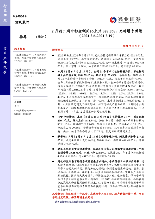 【兴业证券】【20210221】2月前三周中标金额同比上升328.5%,无新增专项债-23页