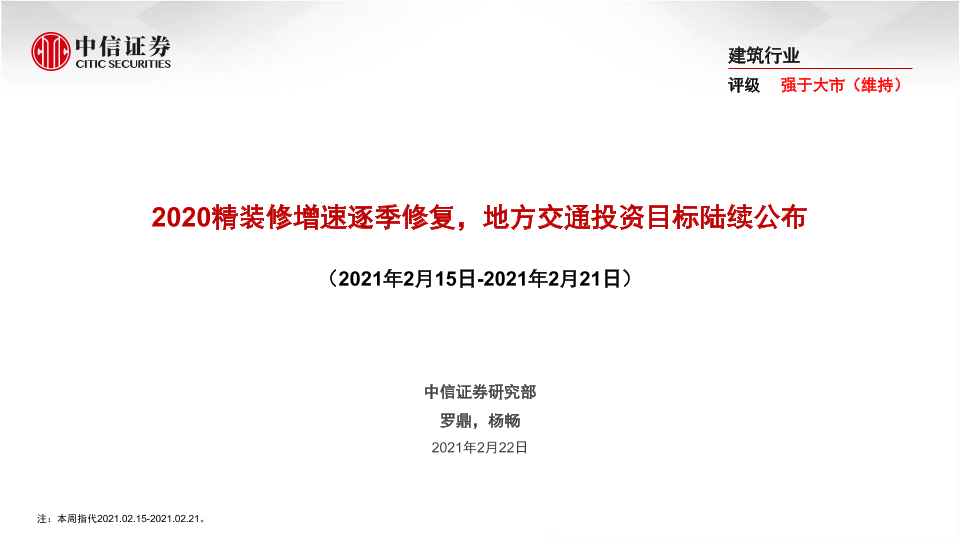 【中信证券】【20210222】2020精装修增速逐季修复,地方交通投资目标陆续公布-45页