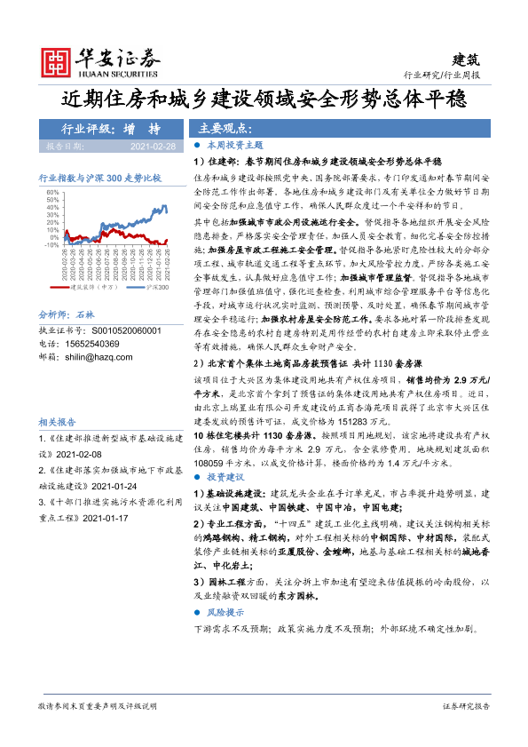 【华安证券】【20210228】建筑行业周报:近期住房和城乡建设领域安全形势总体平稳-15页