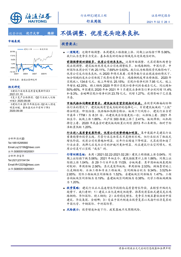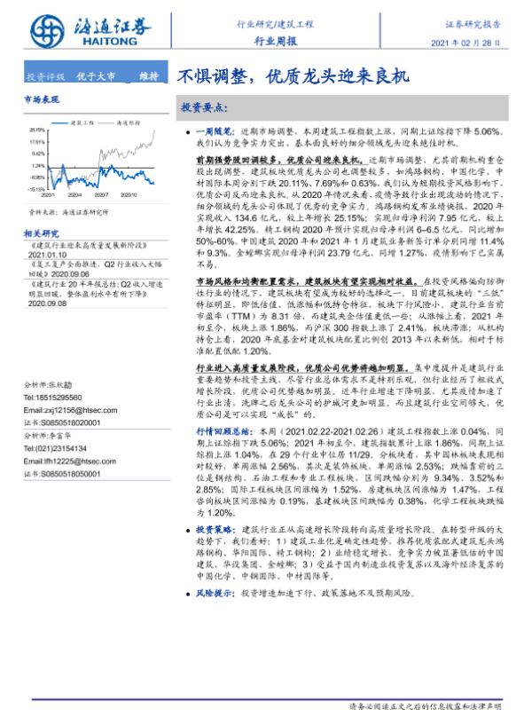 【海通证券】【20210228】建筑工程行业周报:不惧调整,优质龙头迎来良机-6页