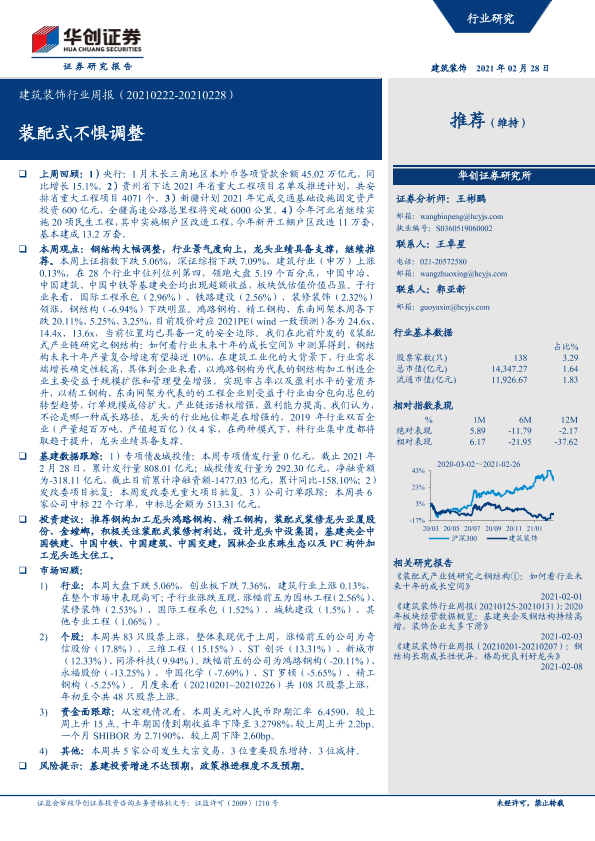 【华创证券】【20210228】建筑装饰行业周报:装配式不惧调整-19页