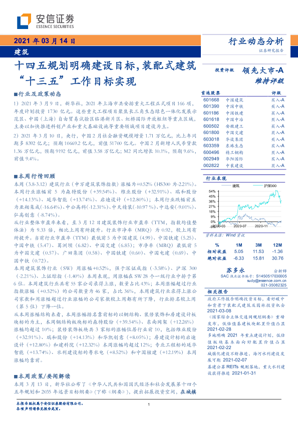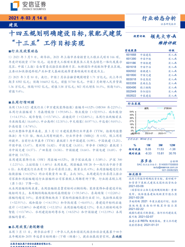 【安信证券】【20210314】建筑行业动态分析:十四五规划明确建设目标,装配式建筑“十三五”工作目标实现-11页