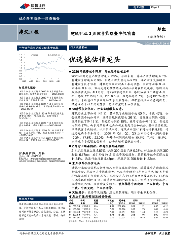 【国信证券】【20210309】建筑行业3月投资策略暨年报前瞻:优选低估值龙头-20页