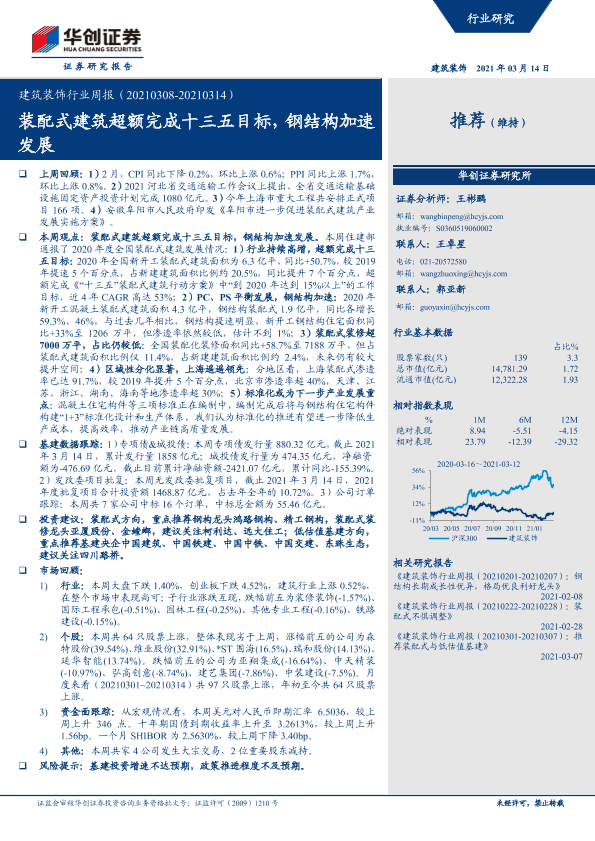 【华创证券】【20210314】建筑装饰行业周报:装配式建筑超额完成十三五目标,钢结构加速发展-17页