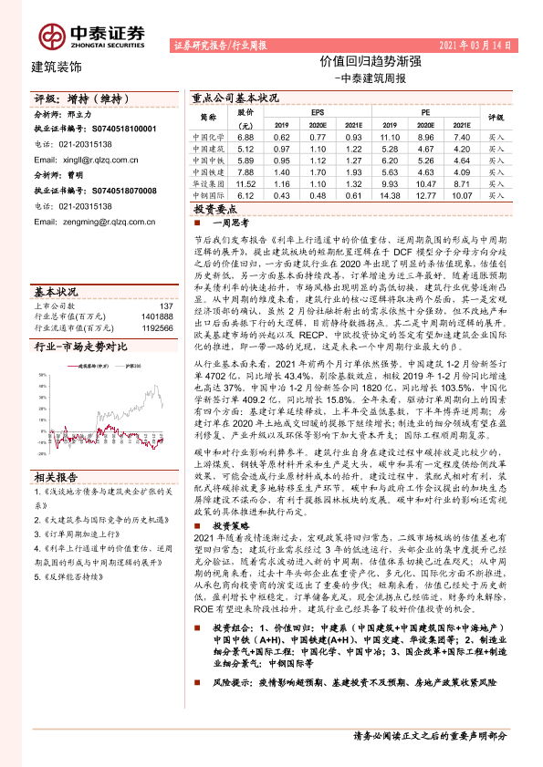 【中泰证券】【20210314】建筑周报:价值回归趋势渐强-11页