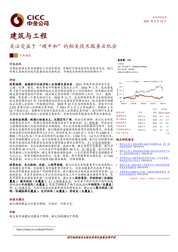 建筑与工程 技术服务 投资机会 碳中和 碳交易