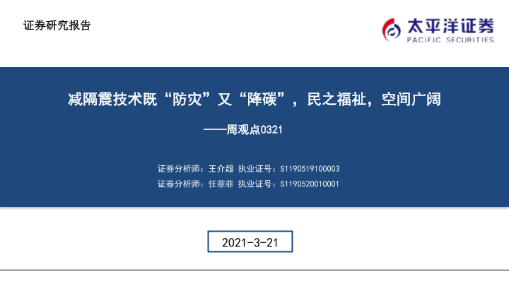 【太平洋证券】【20210321】基建周观点:减隔震技术既“防灾”又“降碳”,民之福祉,空间广阔-25页