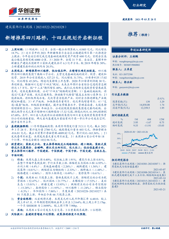 【华创证券】【20210328】建筑装饰行业周报:新增推荐四川路桥,十四五规划开启新征程-19页