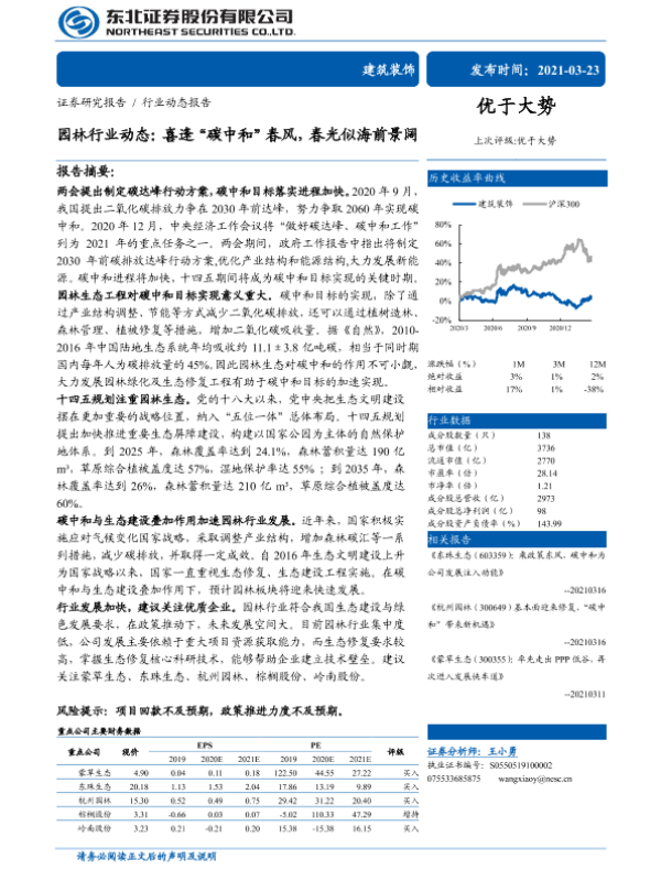 【东北证券】【20210323】园林行业动态:喜逢“碳中和”春风,春光似海前景阔-16页