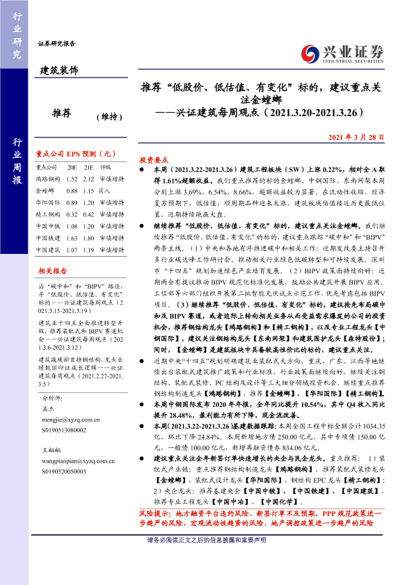 【兴业证券】【20210328】推荐“低股价、低估值、有变化”标的,建议重点关注金螳螂-45页