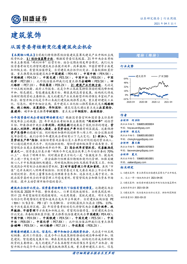 【国盛证券】【20210411】建筑装饰行业周报:从国资委考核新变化看建筑央企机会-14页
