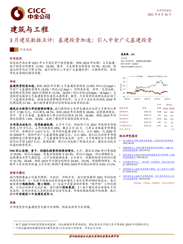 【中金公司】【20210416】3月建筑数据点评:基建投资加速;引入中金广义基建投资-18页