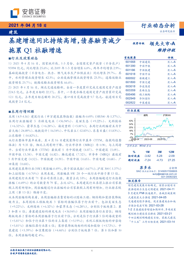 【安信证券】【20210418】建筑:基建增速同比持续高增,债券融资减少拖累Q1社融增速-13页