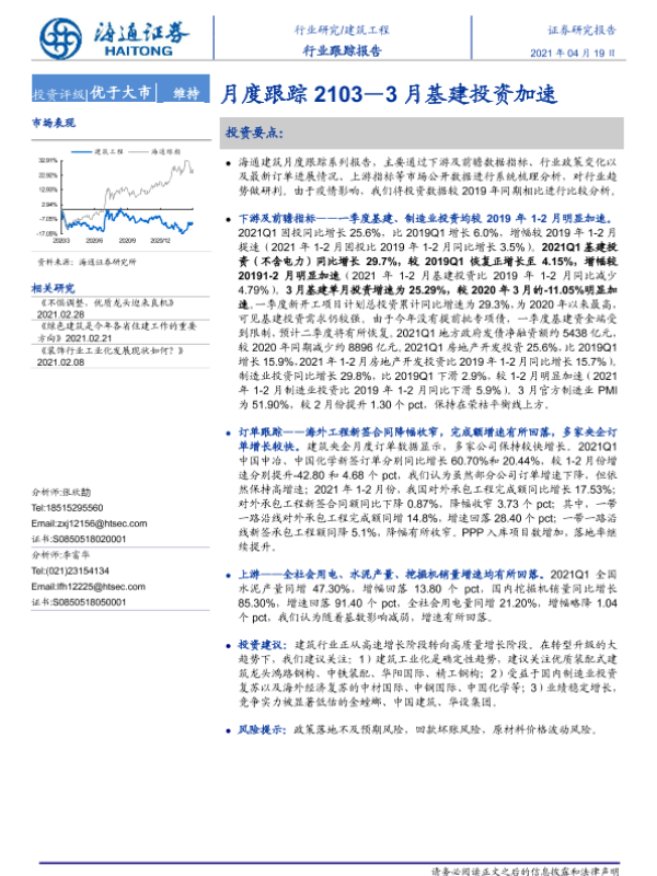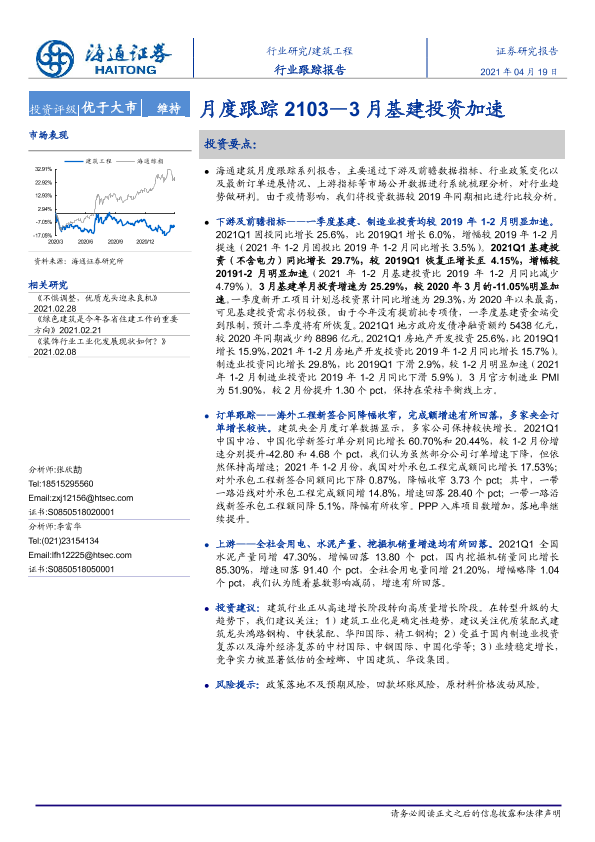 【海通证券】【20210419】建筑工程行业跟踪报告:月度跟踪2103—3月基建投资加速-11页