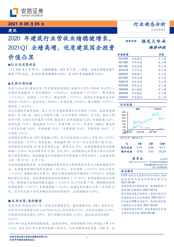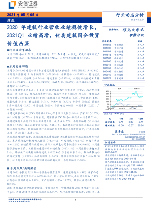 【安信证券】【20210505】2020建筑行业营收业绩稳健增长,2021Q1业绩高增,优质建筑国企投资价值凸显-12页