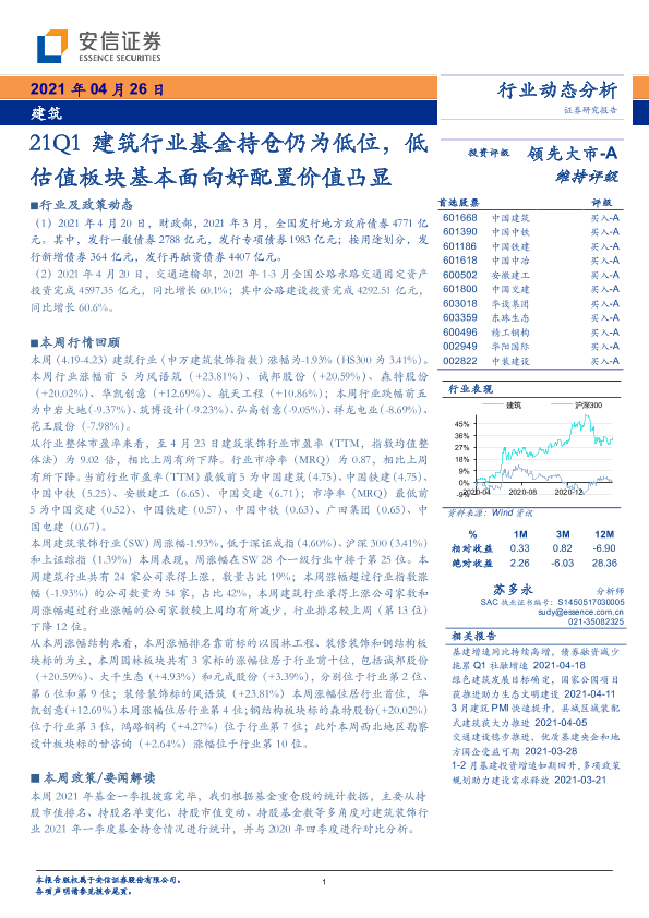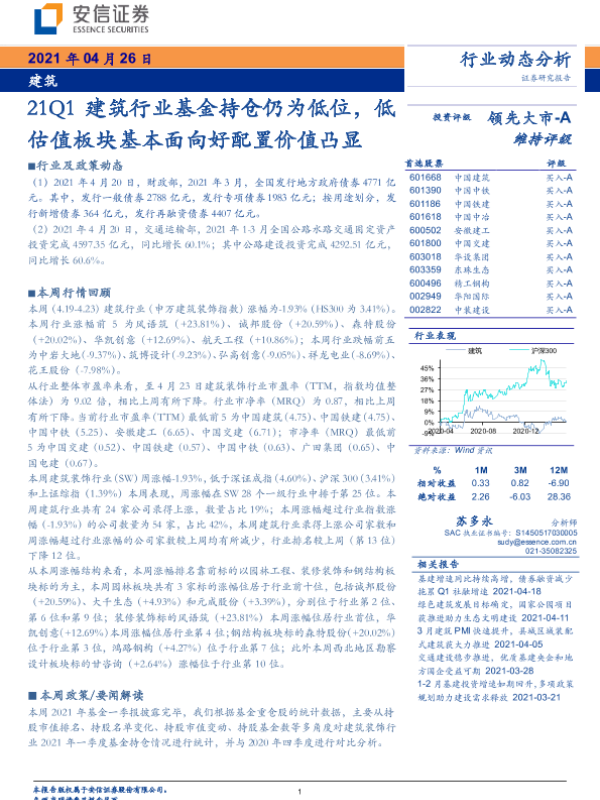 【安信证券】【20210426】21Q1建筑行业基金持仓仍为低位,低估值板块基本面向好配置价值凸显-12页