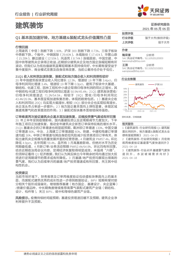 【天风证券】【20210505】Q1基本面加速好转,地方基建&装配式龙头价值属性凸显-8页