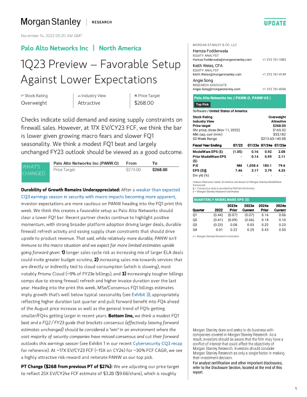 【Morgan Stanley】【20221114】nley-Palo Alto Networks Inc 1Q23 Preview – Favorable Setup-16页