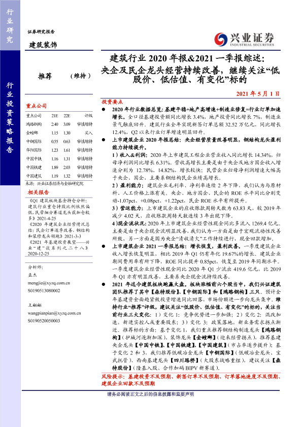 【兴业证券】【20210501】建筑行业2020年报&2021一季报综述-31页