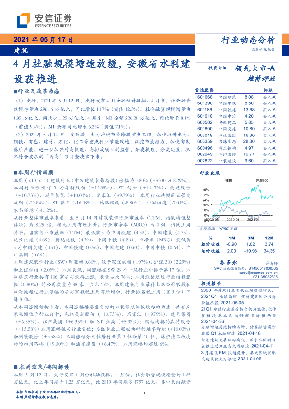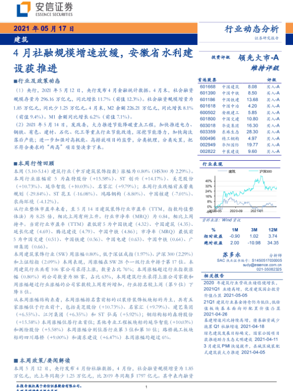 建筑行业 政策动态 水利建设 社融规模 股市表现