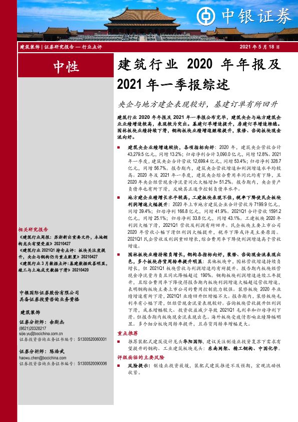 【中银证券】【20210518】建筑行业2020年年报及2021年一季报综述-21页