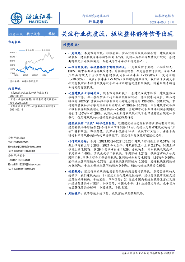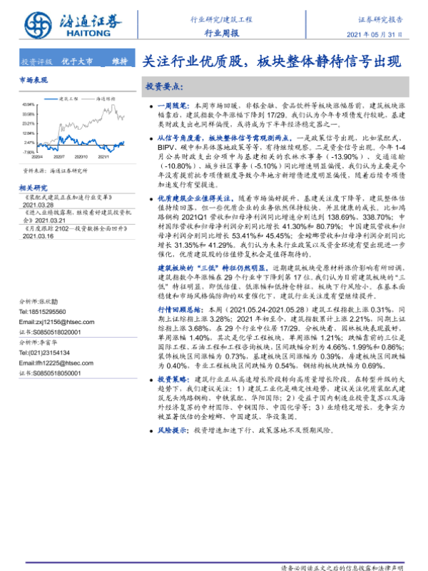 【海通证券】【20210531】建筑工程行业周报:关注行业优质股,板块整体静待信号出现-6页