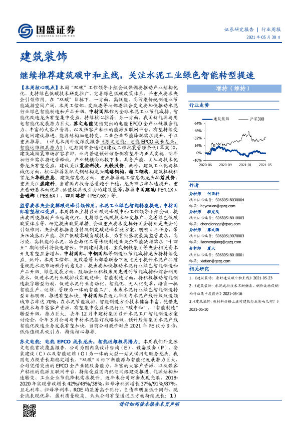 【国盛证券】【20210530】建筑装饰行业周报:继续推荐建筑碳中和主线,关注水泥工业绿色智能转型提速-15页