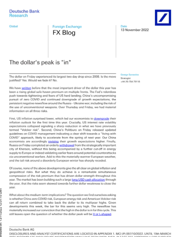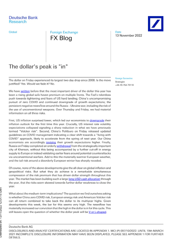 【George Saravelos】【20221113】The dollar's peak is "in"-1页