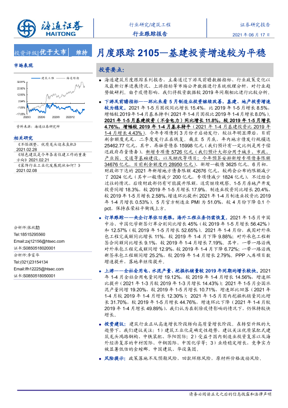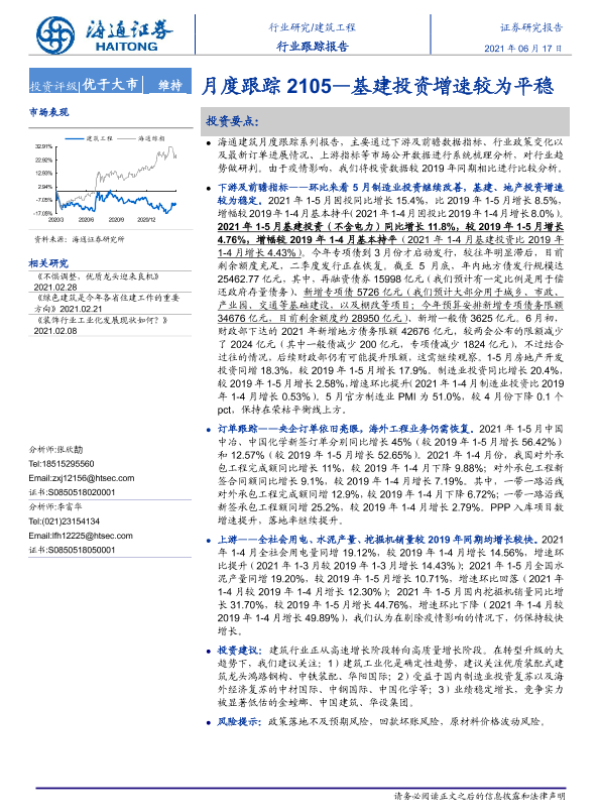 【海通证券】【20210617】建筑工程行业月度跟踪:基建投资增速较为平稳-11页