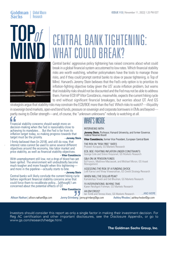 【The Goldman Sachs Group&Inc.】【20221111】Top of Mind Central bank tightening, what could break?-30页