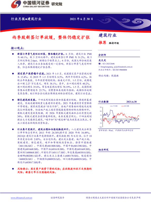 【银河证券】【20210630】建筑行业月报:雨季致新签订单放缓,整体仍稳定扩-21页