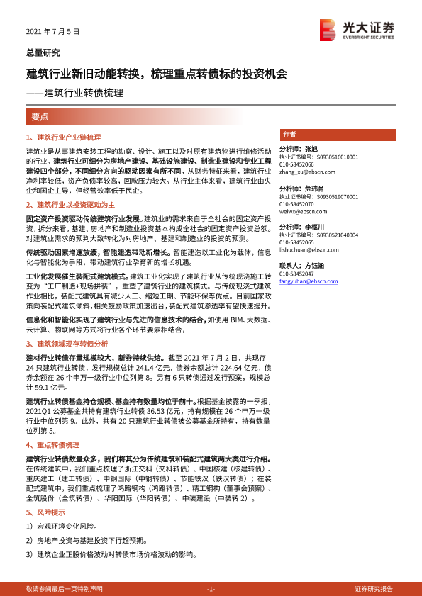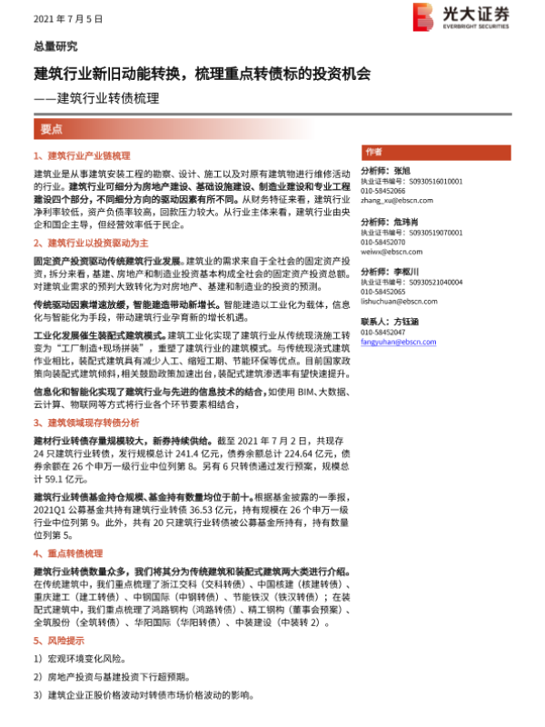 【光大证券】【20210705】建筑行业转债梳理:建筑行业新旧动能转换,梳理重点转债标的投资机会-19页