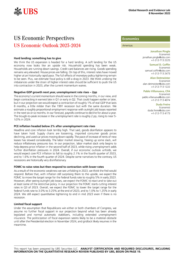 【UBS Securities LLC】【20221108】US Economic Perspectives US Economic Outlook 2023-2024-22页