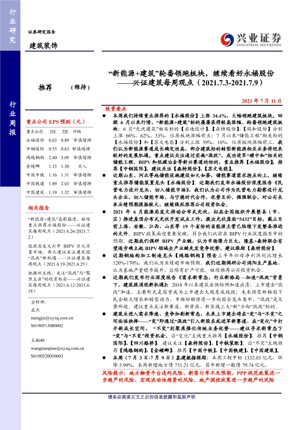 【兴业证券】【20210711】“新能源+建筑”轮番领跑板块,继续看好永福股份-39页
