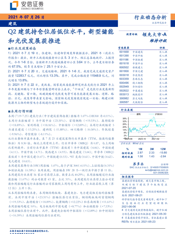 【安信证券】【20210726】建筑行业动态分析:Q2建筑持仓位居低位水平,新型储能和光伏发展获推进-11页