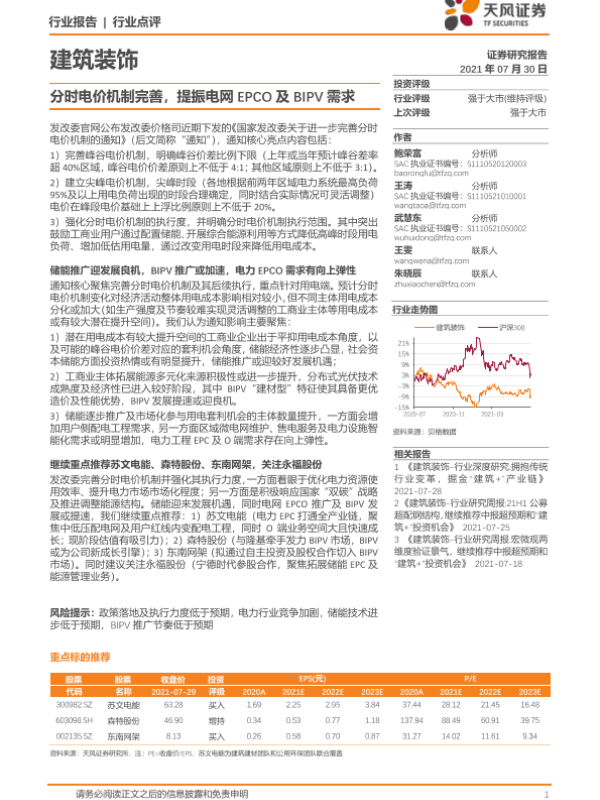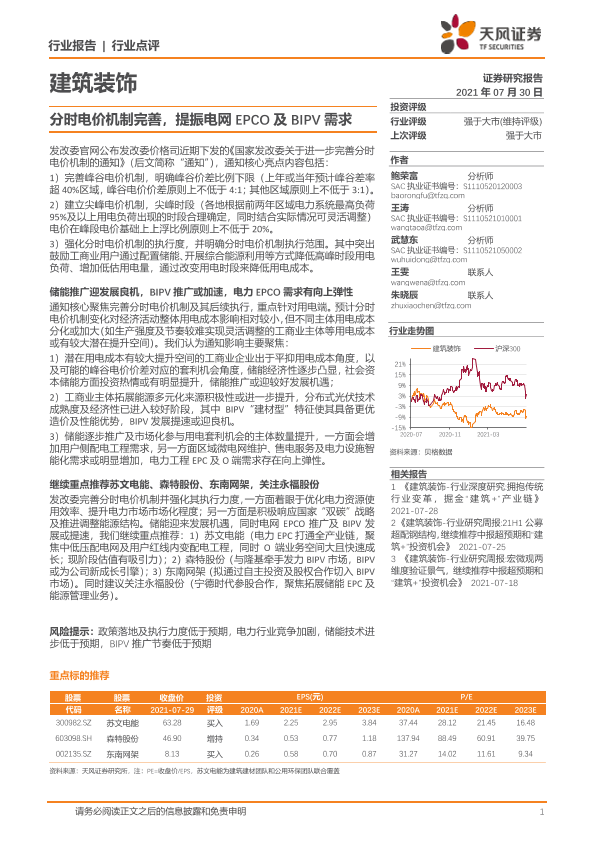 【天风证券】【20210730】分时电价机制完善,提振电网EPCO及BIPV需求-2页