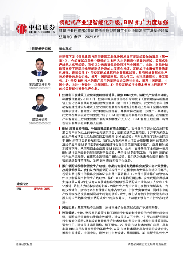 【中信证券】【20210805】建筑行业住建部《智能建造与新型建筑工业化协同发展可复制经验做法清单》点评-3页