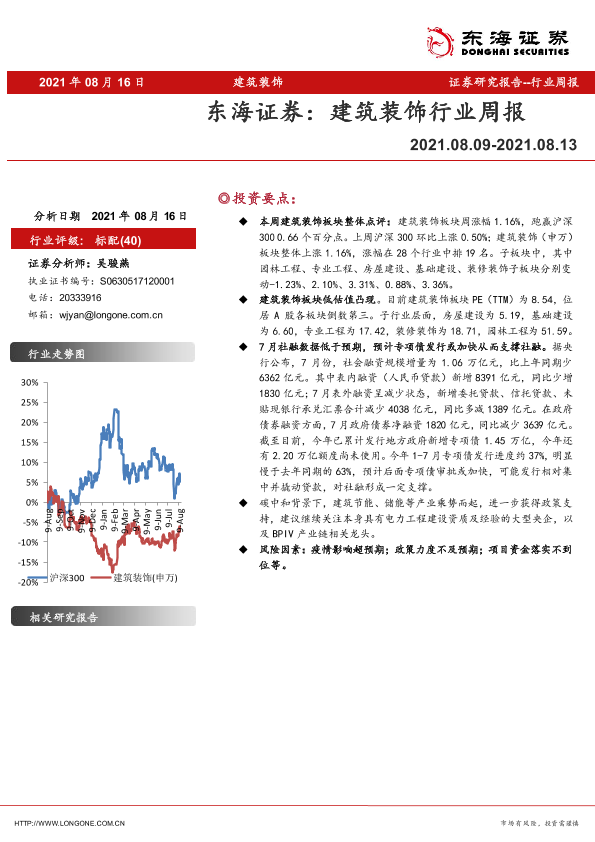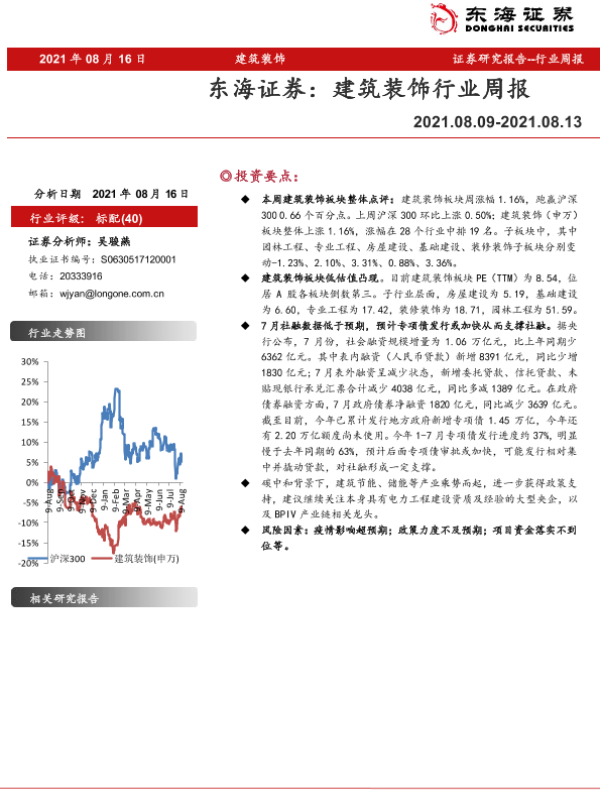 【东海证券】【20210816】建筑装饰行业周报-8页