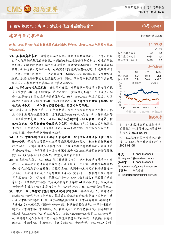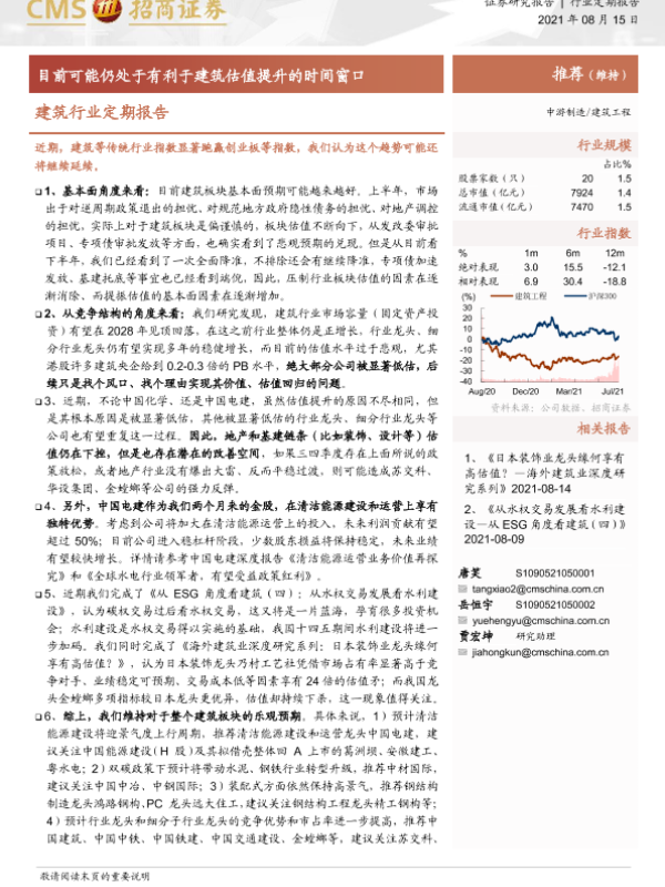 【海通证券】【20210815】建筑行业定期报告:目前可能仍处于有利于建筑估值提升的时间窗口-3页