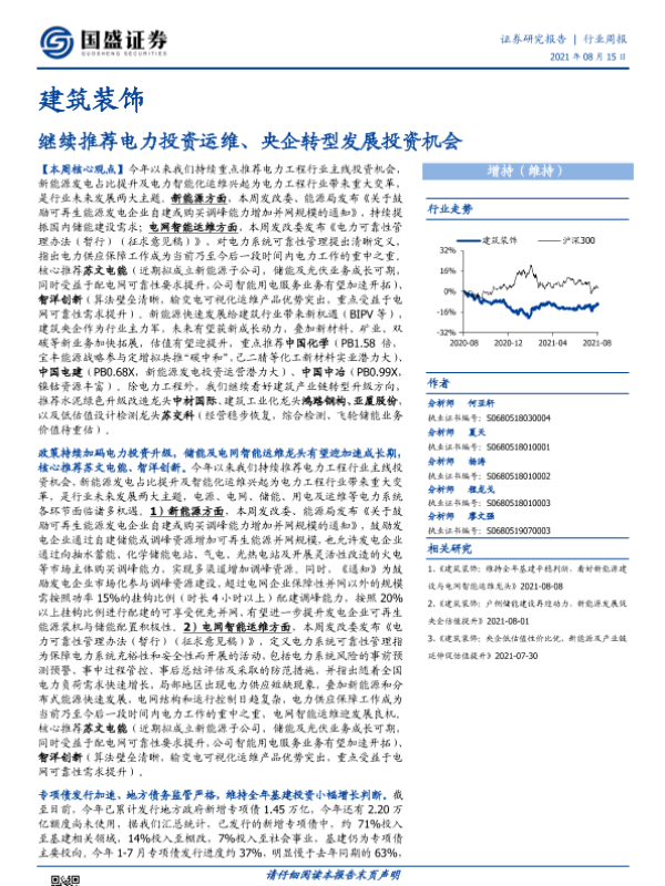 【国盛证券】【20210815】建筑装饰行业周报:继续推荐电力投资运维、央企转型发展投资机会-16页