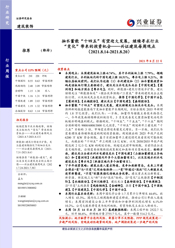 【兴业证券】【20210822】抽水蓄能“十四五”有望迎大发展,继续寻求行业“变化”带来的投资机会-28页