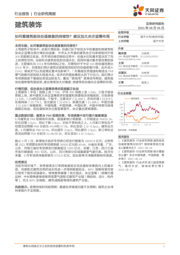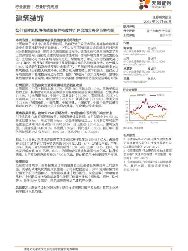 【天风证券】【20210905】建筑装饰行业:如何看建筑板块估值修复的持续性?建议加大央企蓝筹布局-9页
