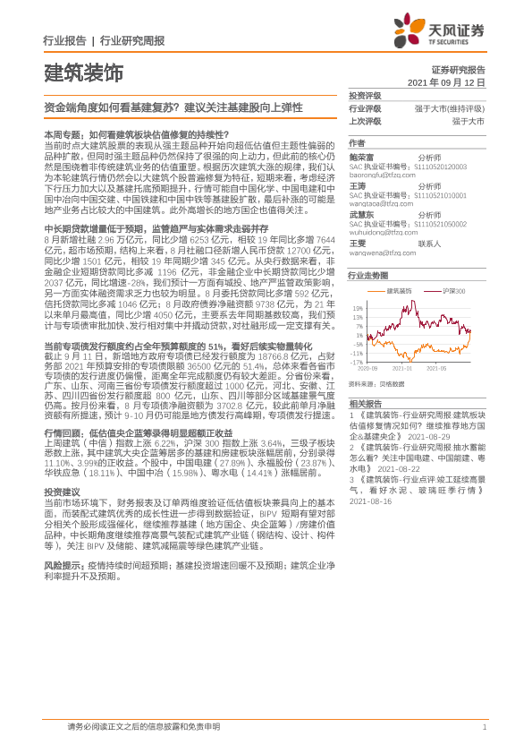 【天风证券】【20210912】建筑装饰行业研究周报:资金端角度如何看基建复苏?建议关注基建股向上弹性-8页