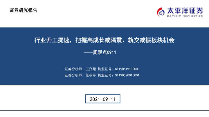 【太平洋证券】【20210911】建筑周观点:行业开工提速,把握高成长减隔震、轨交减振板块机会-39页